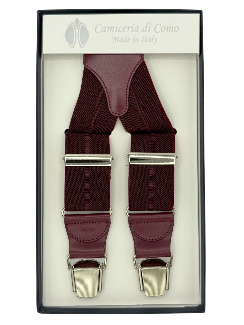 Bretelle Made in Italy, larghezza 35mm, in elastico con riga tono su tono tono di colore bordeaux.