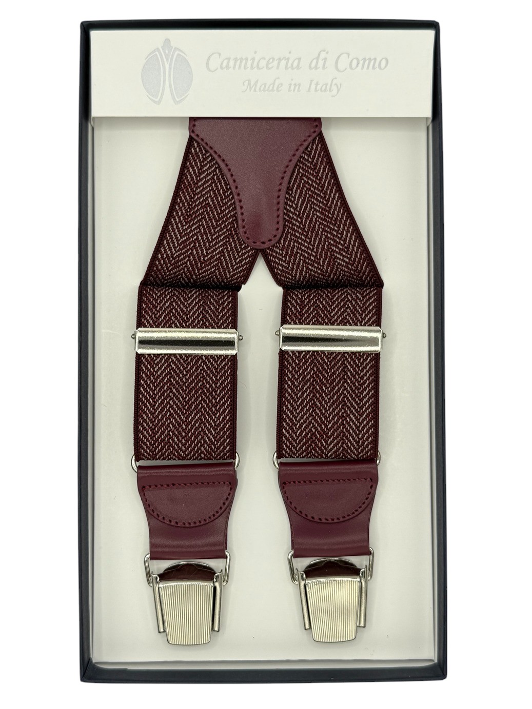 Bretelle Made in Italy, larghezza 35mm, in elastico spigato di colore bordeaux.